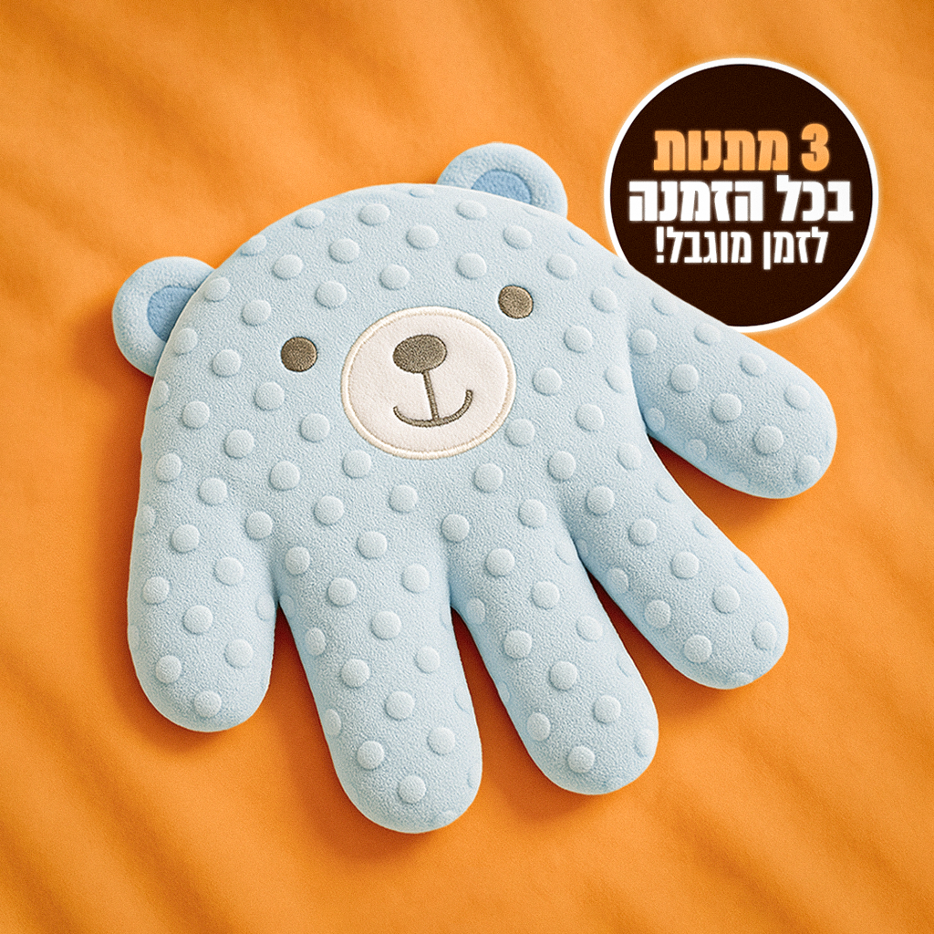 הכפפה עשויה מבד רך, נעים ובטוח לתינוקות, בלי חומרים מסוכנים ובלי חלקים קטנים.